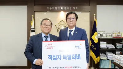 파주시의회, 2020년 적십자 특별회비 전달식 - ‘소외된 이웃에게 희망이 전달되기를 바라며’ - 파주시의회 손배찬 의장은 지난 31일 파주시의회 의장실에서 대한적십자사 경기도지사 윤신일 회장에게 2020년 적십자 특별회비...