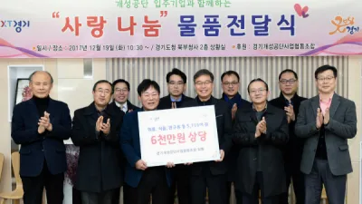 개성공단 입주기업 “경영환경 어려워도 이웃사랑이 먼저” 개성공단 입주기업들이 겨울철을 맞아 이웃사랑 실천에 나섰다. 19일 경기도에 따르면, 경기개성공단사업협동조합(이사장 이희건)은 이날 오전 경기도청 북부청사 상황실에서 ‘경기도 소외계층을 위한 사랑나눔 물품전달 행...