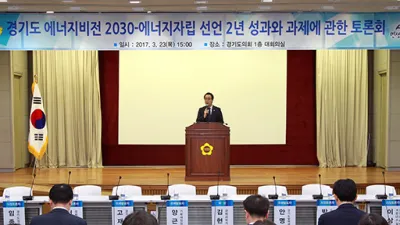 정기열 경기도의회 의장, ‘경기도 에너지비전 2030-에너지자립 선언2년’ 성과와 과제에 관한 정책토론회 참석 경기도의회 정기열 의장(더불어민주당, 안양4)은 3월 23일(목) 15시, 경기도의회 1층 대회의실에서 열린 ‘경기도 에너지비전 2030-에너지자립 ...