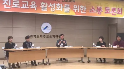 경기도청소년문화연구포럼, 진로교육 활성화를 위한 소통 토론회 개최 김동규 도의원(새누리,파주3)이 1일 경기도파주교육지원청 대회의실에서 4차 산업혁명 시대를 대비하는 진로교육에 대한 논의를 위해 진로교육 활성화를 위한 소통 토론회를 개최하였다. 경기도의회...