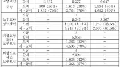 [한길룡 의원] 도로구조물․안전시설 설치․보강 예산, 턱없이 미흡
