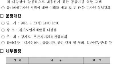 ‘모두를 위한 디자인’공공의 역할 모색 <주요 내용>○ 경기도, 8일 2016년 유니버설디자인 심포지엄 개최 - 유니버설디자인 필요성 공유, 공공기관 역할 모색○ 관심 있는 누구나 참석 가능 ‘모두를 위한 디자인’으로 통하는 ‘유니버설디자인’에 대해...