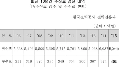 [박정 의원] 한국전력공사, 전기요금에 수신료 포함 징수하면서 최근 10년간 수수료 3478억원 수익