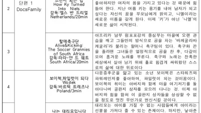 DMZ다큐영화제, 시각장애인·유아도 함께 즐긴다 <주요 내용>○ 제8회 DMZ국제다큐영화제, 배리어프리 첫 도입 - 시각장애인, 유아를 위해 다큐 영화에 쉬운 화면 해설 제공 - <할매축구단>, <살아있는 숲> 등 14편○ 무...