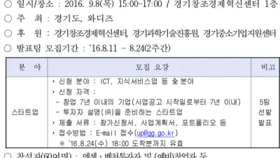 투자자를 찾습니까? 9월 업 창조오디션 참가기업 모집(미래전략담당관)