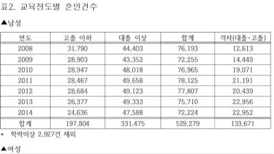결혼·출산도 학력차, 30대초반 남성 결혼은 3배까지 격차(미래전략담당관)