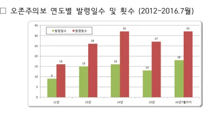 도 오존주의보 발령 횟수 지난해 대비 60% 증가 (보건환경연구원)
