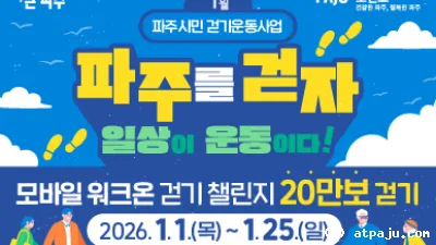 2025-12-30 11:36:20파주보건소, 2026년 1월 ‘워크온 걷기 챌린지’ 운영