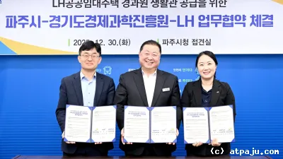 경과원 파주 이전 지원을 위한 ‘파주시-경기도경제과학진흥원-한국토지주택공사 협약’ 체결 파주시는 30일 경기도경제과학진흥원(이하 ‘경과원’), 한국토지주택공사 경기북부지역본부(이하 ‘한국토지주택공...