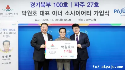 2025-12-31 12:09:38파주시, ‘27호(경기북부 100호) 아너 소사이어티’회원 탄생
