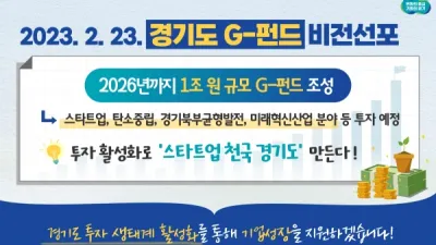 2023-02-24 03:04:23경기도, 2026년까지 1조 원 규모 G-펀드 조성. ‘스타트업 천국’ 만든다