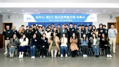 파주시, 제2기 청년정책협의체 위촉장 수여...청년정책 발굴 - 정책역량 키우는 정책아카데미 함께 열려 파주시는 16일 실효성 있는 청년정책 발굴을 위해 구성된 제2기 청년정책협의체 청년위원 46명에게 위촉장을 수여했다.  ...