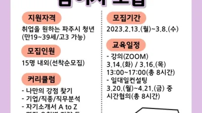 2023-02-10 02:18:57파주시, 청년 취업성공 프로그램 참여자 15명 내외 모집