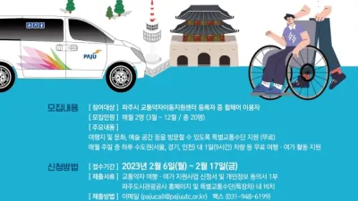 2023-02-02 12:05:18파주시 교통약자이동지원센터, 교통약자 여행·여가 지원사업 모집