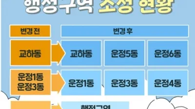 파주시, 행정구역 개편...운정 4, 5, 6동 주민센터 신설 파주시(시장 김경일)는 2023년 1월 1일부로 교하동과 운정신도시의 행정구역을 새롭게 개편했다. 이번 행정구역 개편은 주민들의 편의를 개선하고...