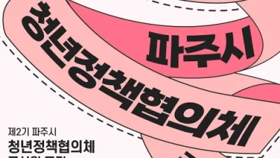 제2기 파주시청년정책협의체 40명 공개모집...청년정책 이끈다 - 청년정책 모니터링 및 정책제안, 청년희망축제 기획 등 수행 파주시(시장 김경일)는 2023년 1월 11일까지 ‘청년정책협의체(이하 청년협의체)’...