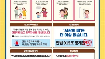 파주경찰서,「아동이 행복한 세상」포스터 배포 - 관내 보육시설(어린이집·유치원) 대상, 아동학대 예방 홍보 활동 파주경찰서(서장 이재성)는, 오는 26일부터 아동학대 예방 포스터를 관내 보육시설(어린이집·유치원) 458...