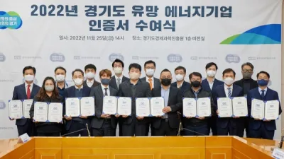 도, ‘유망 에너지기업’ 15개사 인증. 기업당 2,200만 원 지원 ○ 도, 25일 ‘2022년도 경기도 유망 에너지기업 인증서 수여식’ 개최 - 성장 잠재력이 큰 에너지기업 15개사, ‘2022년도 ...