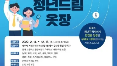 파주시, '청년드림옷장'면접정장 무료대여서비스 호응 - 전년 동월 대비 12.9%증가..만 18~34세 이하 청년 파주시가 구직 청년들에게 무료로 면접정장을 대여해 주는 ‘청년드림옷장’ 사업이 취업 준비 청년들에게 큰 호응을 얻고 있...