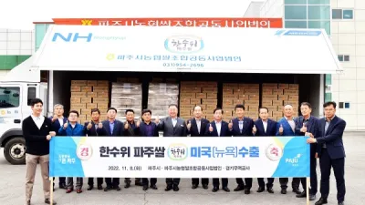 파주시 대표 브랜드 ‘한수위 파주쌀’ 뉴욕 수출 - ‘참드림’ 품종...모니터링 후 물량 확대 예정   파주시 관내 농가에서 생산된 ‘한수위 파주쌀’이 미국 뉴욕 수출길에 올랐다. 시는 8일 김경...