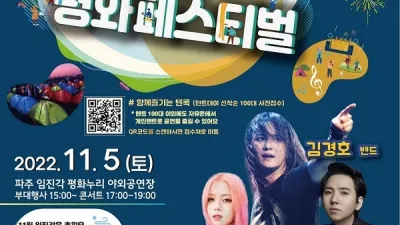 2022-10-27 07:56:00파주시, 제1회 파주평화페스티벌 11월 5일 개최 - 텐트에서 즐기는 가을밤 평화콘서트...“평화가 활짝 피었습니다”
