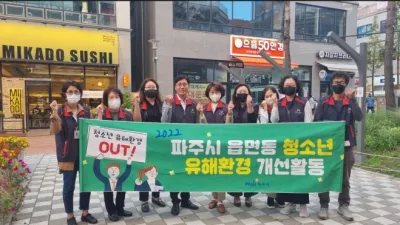 2022-09-30 01:16:15파주시 운정2동 청소년지도위원, 청소년 유해환경 정화 캠페인 실시 -“청소년 안전은 우리가 지킨다”