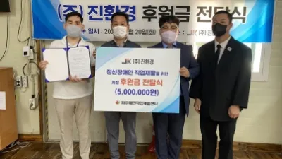 2022-09-23 02:48:45㈜진환경, 파주혜민직업재활센터에 후원금 5백만원 전달 정신장애인 직업재활 분야에 후원