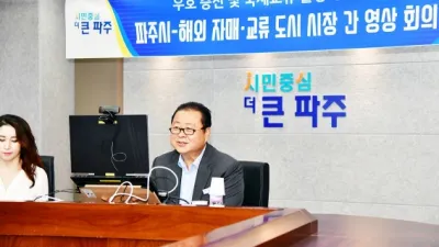 김경일 파주시장, 해외 자매·교류도시 시장들과 영상회의 - 도시 간 우호 증진 및 교류협력 방안 논의 김경일 파주시장이 코로나19로 침체된 해외 도시와의 의사소통을 강화해 우호관계를 유지하고 새로운 교류협력 방안을 찾아 활성화하기 위해 해외 자매&middo...