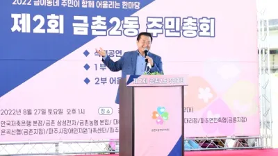 파주시 금촌2동 주민자치회, 제2회 주민총회 성료 파주시 금촌2동 주민자치회(회장 유영수)는 지난 27일 공릉천 칠간다리 밑에서 주민총회를 개최했다. 이날 행사에는 김경일 파주시장을 비롯한 이성철 파주시의회 의장, 시의원, 금촌2동 사회단체 대표들과 주민 ...