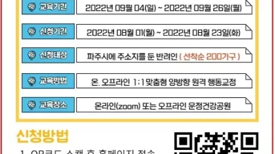 2022-08-22 02:33:47파주시, 9월 4일부터 반려동물 문화교실 프로그램 시행