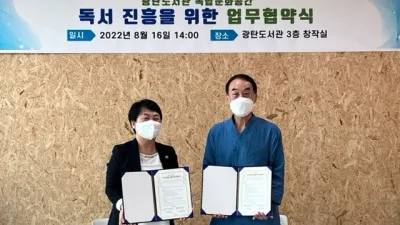 파주시 중앙도서관, 신산초등학교와 독서 진흥 업무협약식 개최 파주시 중앙도서관(관장 권예자)은 지난 16일 광탄도서관에서 신산초등학교(교장 한석주)와 ‘광탄도서관 복합문화공간 독서 진흥’을 위한 업무협약을 체결했다고 밝혔다. 중앙도서관...