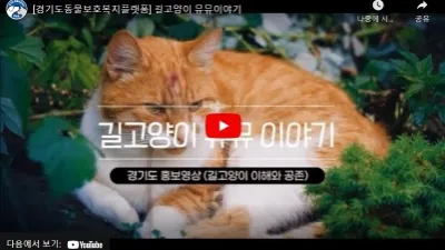 경기도, 인간-길고양이 공존 메시지 담은 음악 ‘길고양이 뮤뮤 이야기’ 제작 경기도는 길고양이 등 유기동물에 대한 도민 인식개선을 위해 랩(Rap) 뮤직비디오 ‘길고양이 뮤뮤 이야기’를 제작, 유튜브 등 온라인을 통해 공개했다...