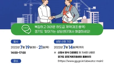 2022-07-06 02:04:21복잡한 하도급 계약, 변호사에게 무료로 대면 상담받으세요! 경기도, 7월 19~21일 동탄산단에서 상담소 운영