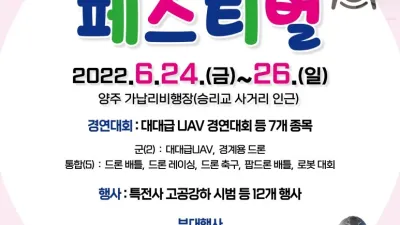 드론봇이 펼치는 가상의 전투 현장속으로... 24~26일, 경기도 양주 가납리 비행장서‘Army TIGER 드론봇 페스티벌’ 개최 드론 레이싱・배틀 축구 등 다양한 경연대회와 시범・전시・체험 등 볼거리 가득 육군 지상작전사령부(이하 지...
