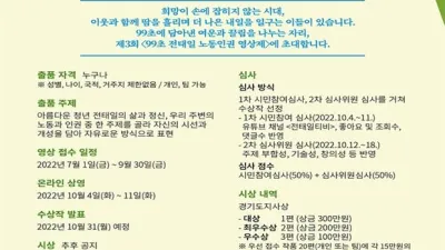 경기도, 노동존중 정신 기릴 ‘전태일 열사 추모사업’ 추진‥참가자(단체) 모집 경기도가 2022년도 전태일 열사 추모사업의 일환으로 ‘99초 전태일 노동인권 영상제’ 등 3개 사업을 추진, 참가자(단체)를 모집한다고 27일 밝...