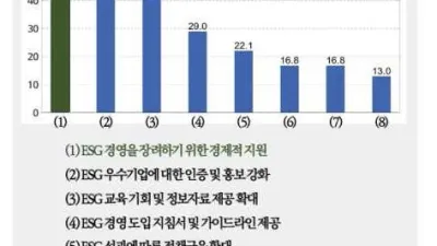 2022-06-03 01:59:01경기도내 중소기업 77%, “환경·사회·투명(ESG) 경영 활성화 위해 경기도의 지원 필요”
