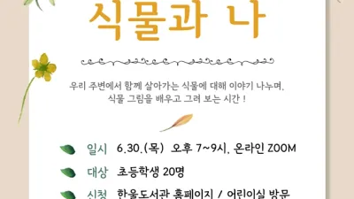 2022-06-03 02:09:24파주시 한울도서관,‘식물과 나’이소영 작가와의 만남