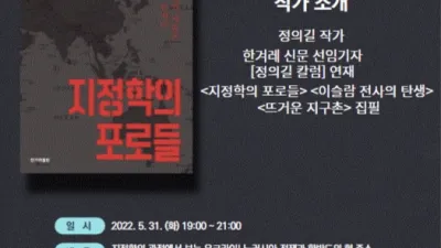 파주시 한울도서관, <전쟁으로 보는 지정학의 현 주소와 한반도> 정의길 작가 줌강연 파주시 한울도서관은 오는 31일 오후 7시부터 9시까지 ‘시선+’ 북컬렉션 연계강좌로 &ls...