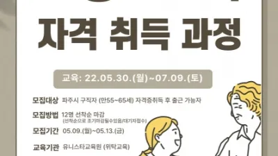 2022-05-09 01:33:23파주시,‘요양보호사 자격증 과정’참여자 모집 5월13일까지, 12명 선착순 모집 -