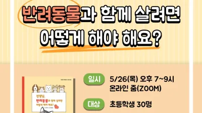 파주시 한울도서관, 이유미 작가와의 만남 운영 파주시 한울도서관(관장 이현주)은 어린이자료실에서 진행중인 ‘또 하나의 가족, 반려 동·식물’ 도서 전시와 연계해, 오는 26일 이유미 작가와의 만남을 운영한다고 밝혔다. 이번...