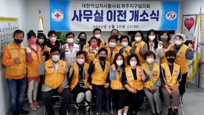 대한적십자사봉사회 파주지구협의회 사무실 이전 개소식 개최 파주시는 대한적십자사봉사회 파주지구협의회(회장 연규희)가 월롱면 통일로 696번지에 새로운 사무실을 마련하고 지난달 29일 개소식을 가졌다고 밝혔다. 이날 개소식은 연진흠 파주시자원봉사센터장, 정운란...