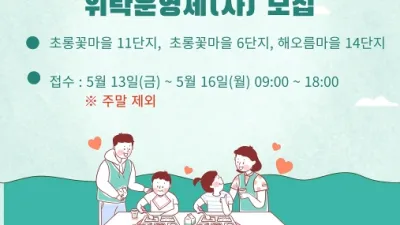 파주시, 국공립어린이집 3개소 위탁운영체(자) 모집 파주시는 국공립어린이집 3개소에 대해 위탁운영체(자)를 모집한다고 밝혔다. 위탁운영 대상 국공립어린이집은 ▲초롱꽃마을11단지(A26블록 신혼희망타운) ▲초롱꽃마을6단지(금강펜테리움 센트럴파크) ▲해오름마을...