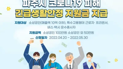 2022-04-18 01:26:22파주시, 코로나19 제3차 소상공인 등 긴급생활안정 지원금 신청