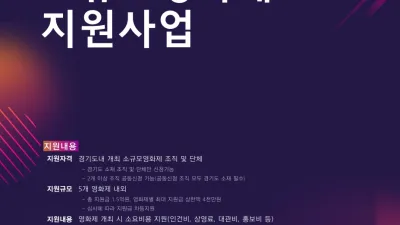 2022-03-31 02:26:08경기도, 5개 내외 소규모영화제에 영화제 개최비용 지원. 참가단체 모집