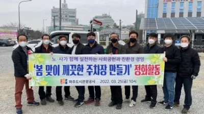 2022-03-30 01:15:37파주도시관광공사, 노·사가 함께하는 ‘봄 맞이 깨끗한 주차장 만들기’ 청결활동 펼쳐