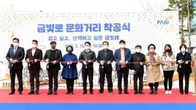 금빛로 문화거리 조성사업 착공식 개최 -‘경기 어울림터 공원조성사업’힘찬 첫 삽 파주시(시장 최종환)가 ‘15일 금빛로 문화거리 조성사업’ 착공식을 개최했다. 이날 착공식에는 ...