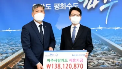 NH농협은행 파주시지부, 제휴카드 적립기금 파주시에 전달 파주시(시장 최종환)는 3월 16일 NH농협은행 파주시지부로부터 파주사랑카드 등 제휴카드 적립기금 1억3,812만870원을 전달받았다. 이날 전달된 기금은 지난해...