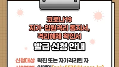 파주시, 코로나19 자가격리 관련 증명서 온라인 신청·발급 시스템 도입 파주시(시장 최종환)는 오미크론 확산에 따라, 연일 확진자가 600명 이상 발생하고 있어 자가격리 관련 증명서를 이메일로 신청 및 발급하는 시스템을...