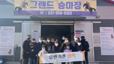 파주시 장애인가족 정서 및 교육 지원을 위한 업무협약 파주시장애인가족지원센터(센터장 김정한, 이하 센터)와 그랜드승마장(이사장 목성균)은 2022년 1월 26일 파주시 장애인가족 정서 지원 및 교육지원을 위한 업무협약을 진행하였다. 센터는 20...
