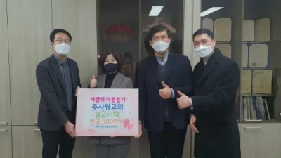 2022-01-15 06:49:52주사랑교회, 파주시 금촌2동에 성금 5백만원 기탁